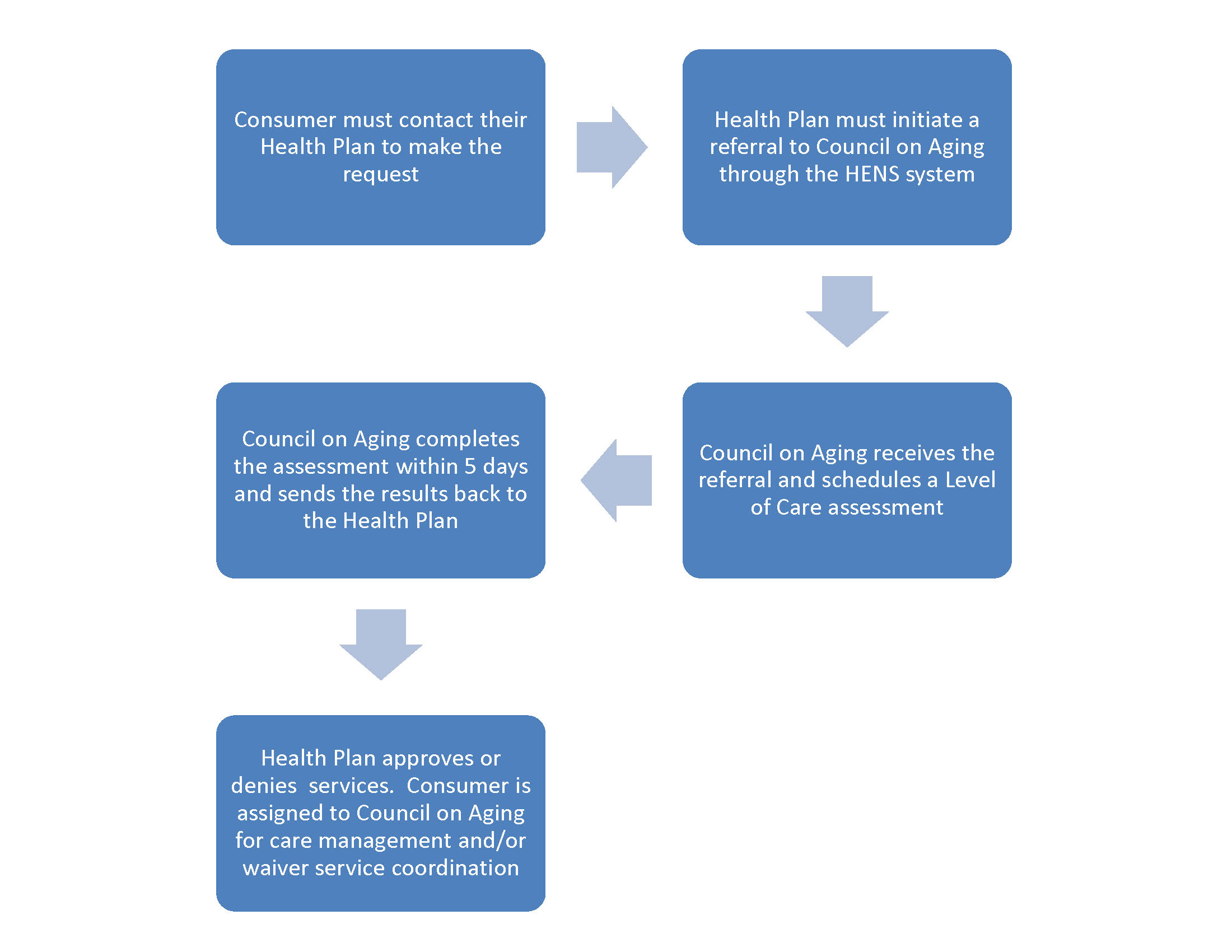 If a MyCare Ohio member is applying to a waiver program for the first time, the person must contact his or her health plan first. After a phone screening, the health plan may make a referral to Council on Aging, which handles assessments and determines level of care eligibility.