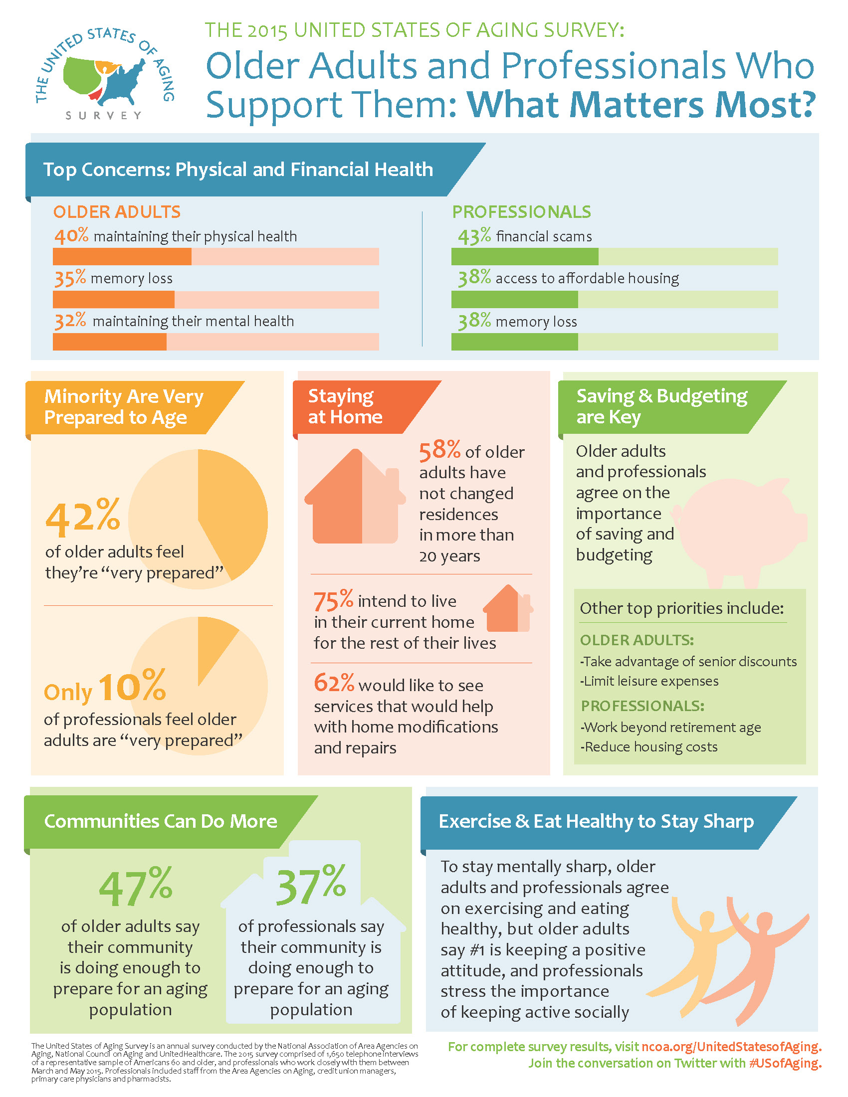 Each year the United States of Aging Survey polls U.S. adults age 60 and older for their insights on how older Americans are preparing for their later years, and what communities can do to better support this growing population.